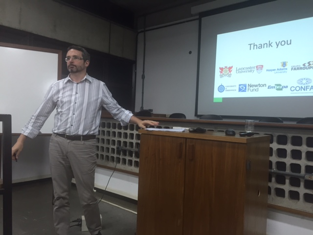 Bobby and Ken fly to Brazil to work at the Universidade Federal de Visosa with Dr Sam Elliot. The visit is funded by Newton Fund for Collaboration grant to Ken and Sam, entitled: “Impact and biological control of a new crop pest in Brazil”. The trip involves lots of field work and a workshop, but is also an opportunity for Ken to give a couple of seminars about “How to get published in an academic journal” (read a Brazilian newspaper article about this), and for Bobby to start his 3 month internship with a small biological pest control company. As well as a chance to catch up with iPEG graduates Fabio de Assis Pinto and Philip Donkersley, both working with Sam.