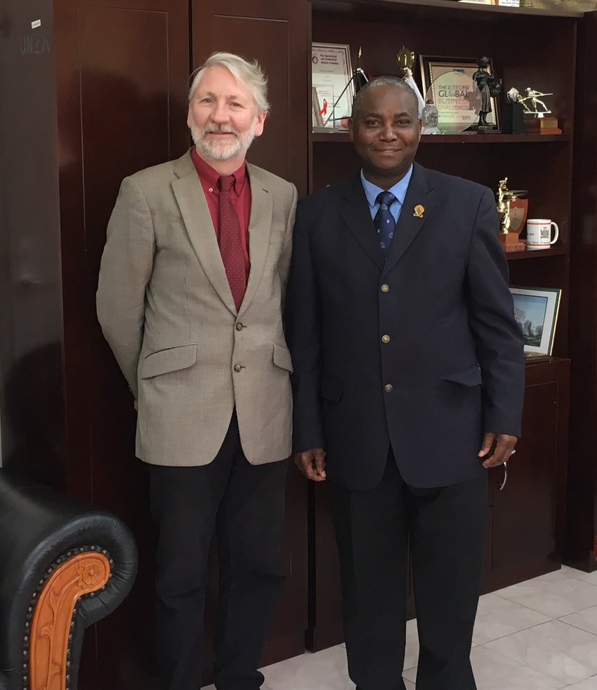 Ken visits University of Zambia for talks on the invasive Fall armyworm (Spodoptera frugiperda) and publishes an article on the issue in The Conversation Africa Ken with UNZA Vice-Chancellor, Professor Mumba